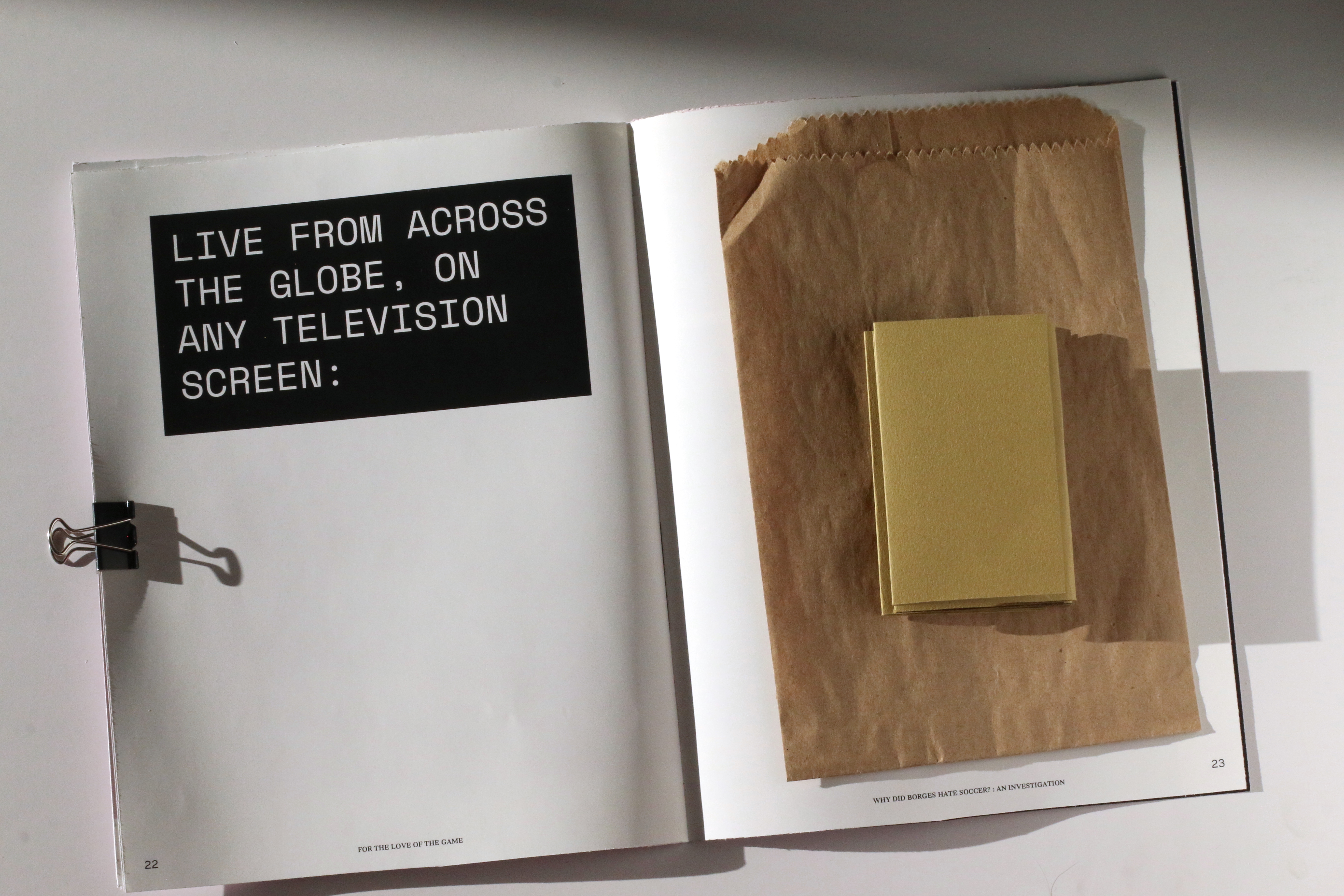 A three part book titled “For the Love of the Game” exploring the wacky, absurd world of football. The most widely played sport in the world has everything: devotion, fandom, and sweet sweet merch.
